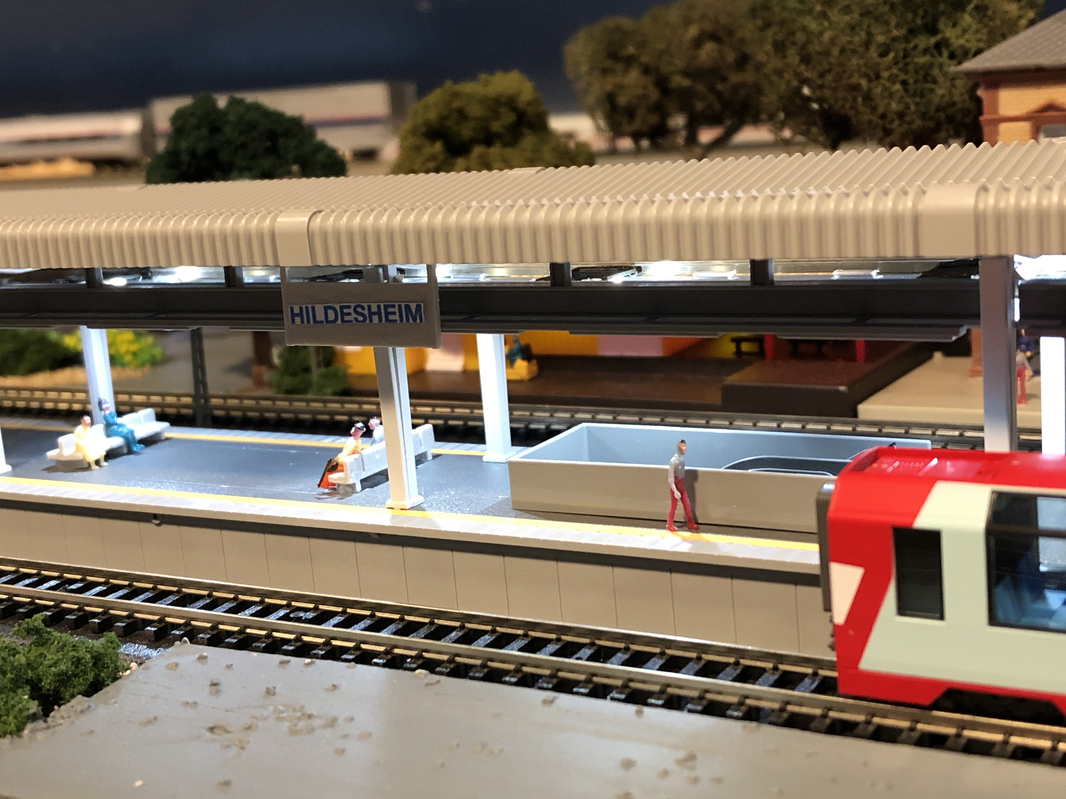 The platforms are from KATO. This Japanese company specializes in N scale railroad models and accessories. Of course, this being a Japanese company, most of the models are of Japanese prototypes. Including the station platforms. With a little work German train station buildings and Japanese station platforms get along quite nicely. Like they say: “it’s my railroad and I can do what I want!”