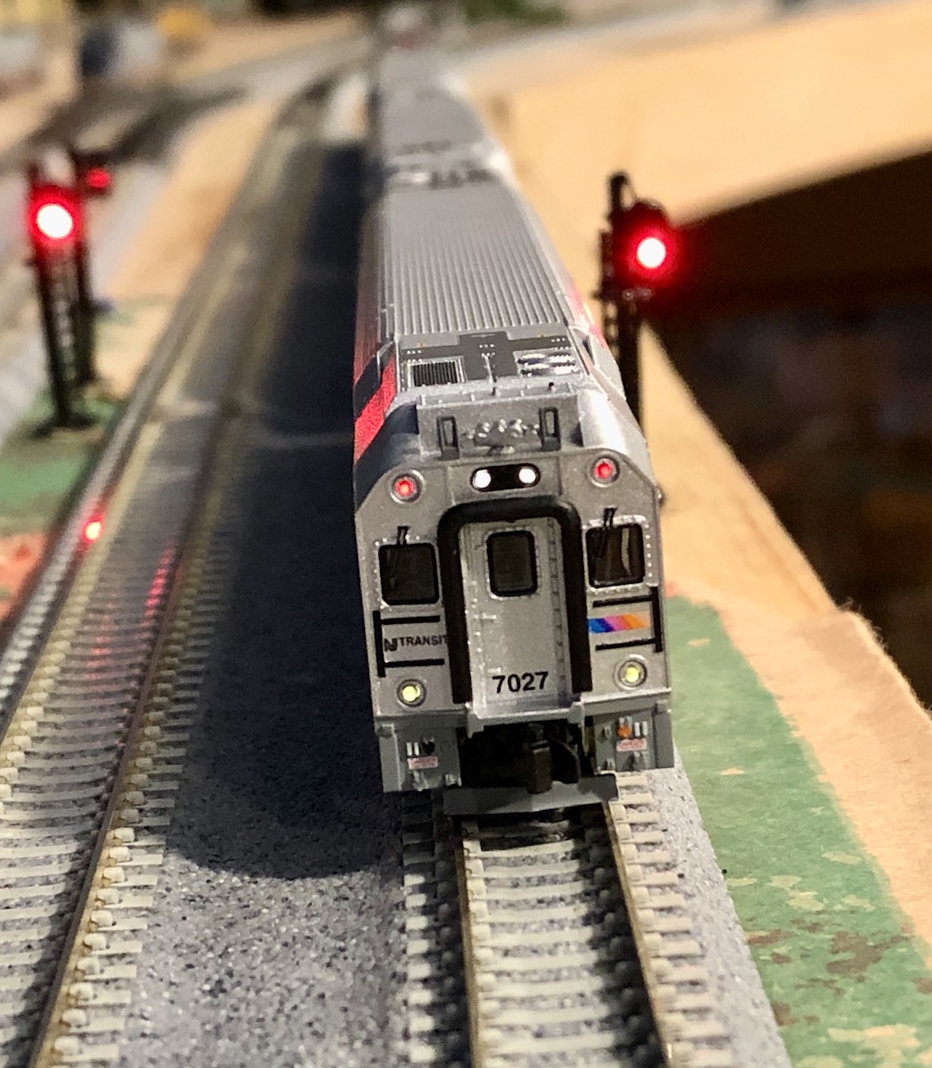 Since it is my railroad after all and I am not a “rivet counter” I pretty much run anything under the sun on my pike. A German Railways ICE 4 is just as home on my railway as are Union Pacific Railroad GE AC6000 diesel-electric locomotives. New Jersey Transit will share the track with the Rhätische Bahn “Glacier Express”, while an Amtrak ACS-64 lead train sits in the station. You get the idea…The quality of the rolling stock really varies. Broadway Limited puts out some amazingly well running locomotives. Like he aforementioned GE AC6000. KATO’s “Glacier Express” is not so great. The coaches will derail by just looking at them! They are much too light weight. The locomotive’s snowplows were installed too low, so they would catch on turnout joints. A little filing down of the plows solved that problem. The Deutsche Bahn ICE 4, also made by KATO, sounds like a swarm of angry bees at speed, while my Atlas Model Train New Jersey Transit ALP-45 cannot even get up to speed. It just trundles along the track. According to Atlas it has something to do with the motor armature and they recommend “running in” the locomotive. OK, it’s been “running in” for months now, but still can’t get up to speed. Looks like a manufacturing issue to me. Particularly since other owners are having the same issue. TRIX and Piko make good models, which generally run well. I have not had any problems with them. Hobbytrain/Lemke are also nice. The only quibble there is the fact that the head and tail lights are way too dim.
